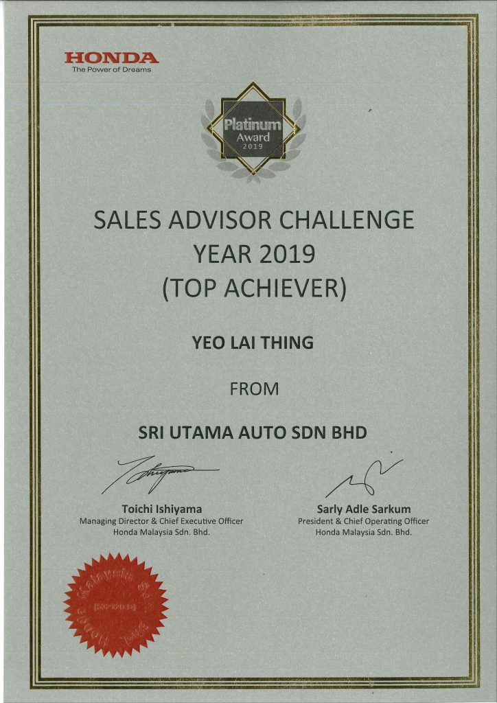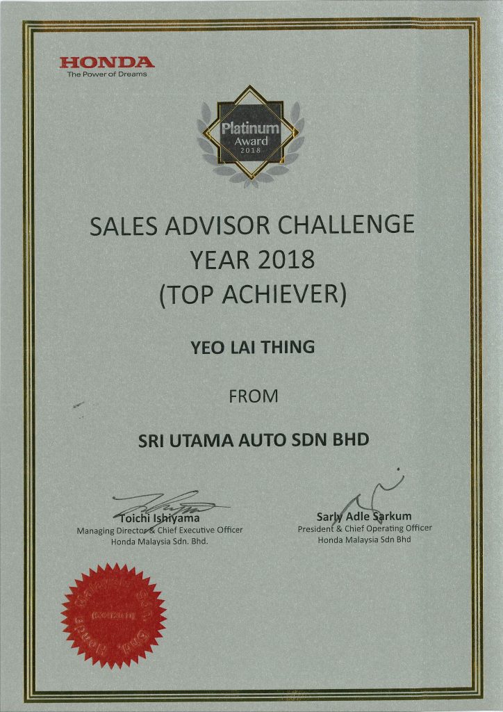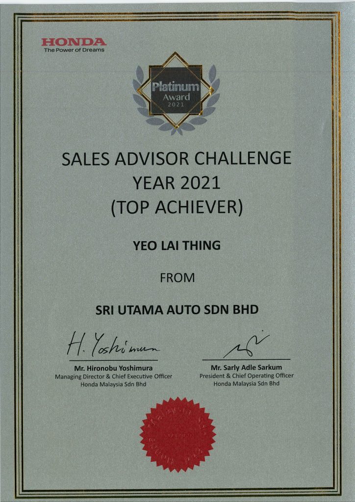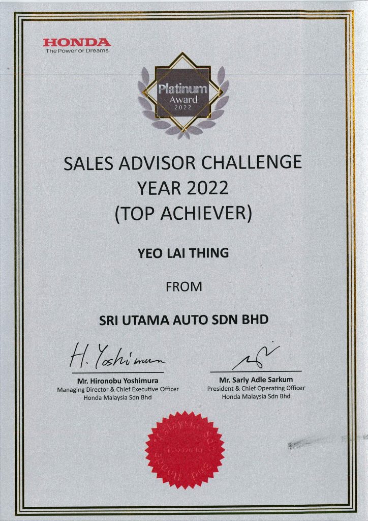 With over 14 years of experience, Ms. Felicia Yeo has proudly served as a Honda Top Sales Advisor, earning the Honda Malaysia Best Sales Advisor Award (2015–2024) and being ranked in the Top 10 Nationally from 2019–2021.